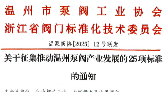 关于征集推动温州泵阀产业发展的25项标准的通知